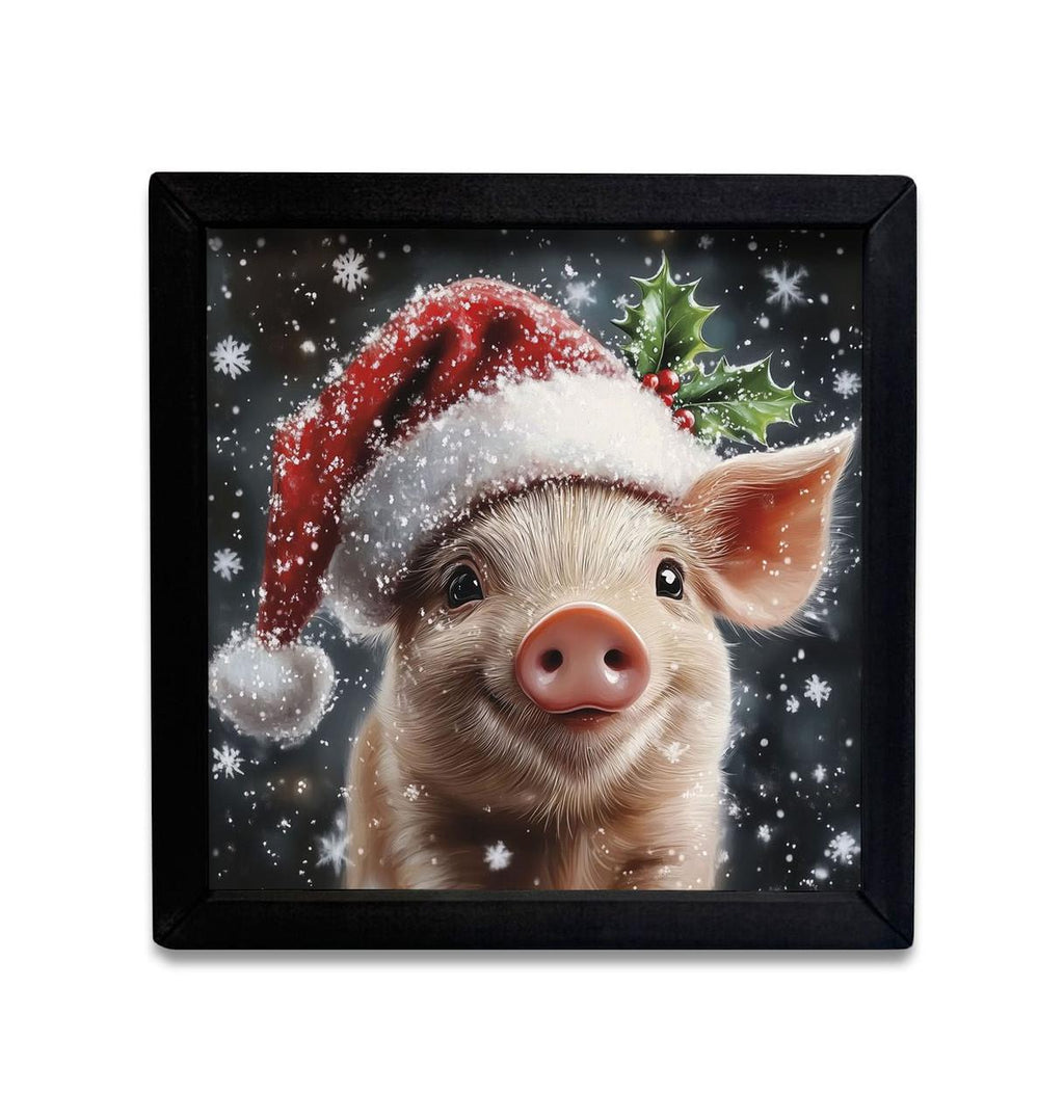 Add a touch of whimsy and holiday cheer to your home decor with the delightful Christmas Pig Box Frame! This charming pig in a Santa hat surrounded by falling snowflakes will bring a festive spirit to any room.