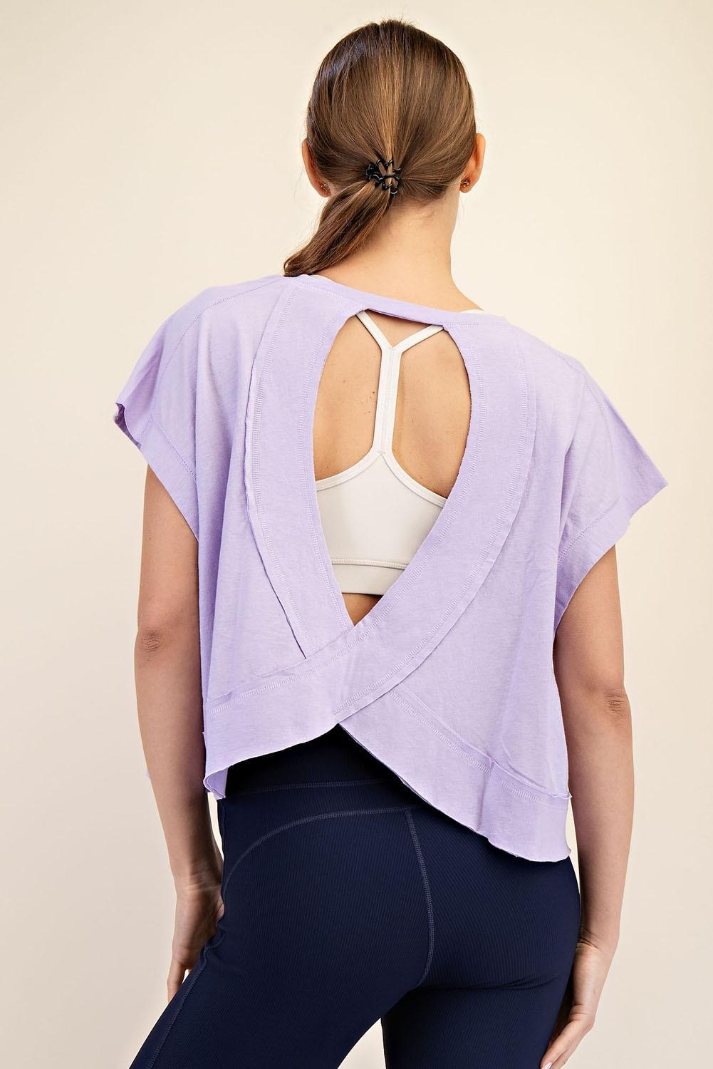 An oversized cotton slub short sleeve top with a cropped length and eye-catching open back details. Soft and airy, it delivers a breezy, effortlessly chic look for any occasion. Features: - Breathable and lightweight cotton slub fabric - Relaxed fit / Oversized - Cropped length - Wide round neckline - Short sleeve tee - Dropped armhole - Open back - Raw edge details Model is 5'9" and wearing size Small.