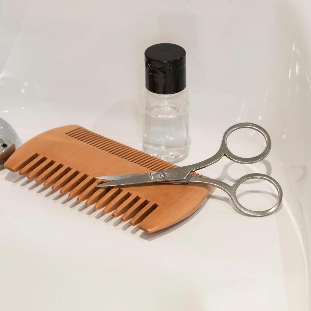 Stay sharp and well-groomed. Includes double-sided pear wood beard comb, stainless steel trimming scissors and 10ml of beard oil in a portable, reusable tin.
