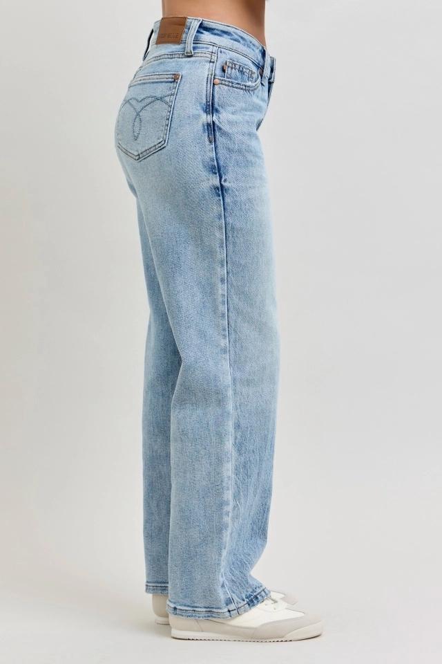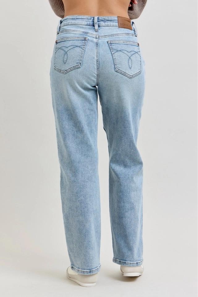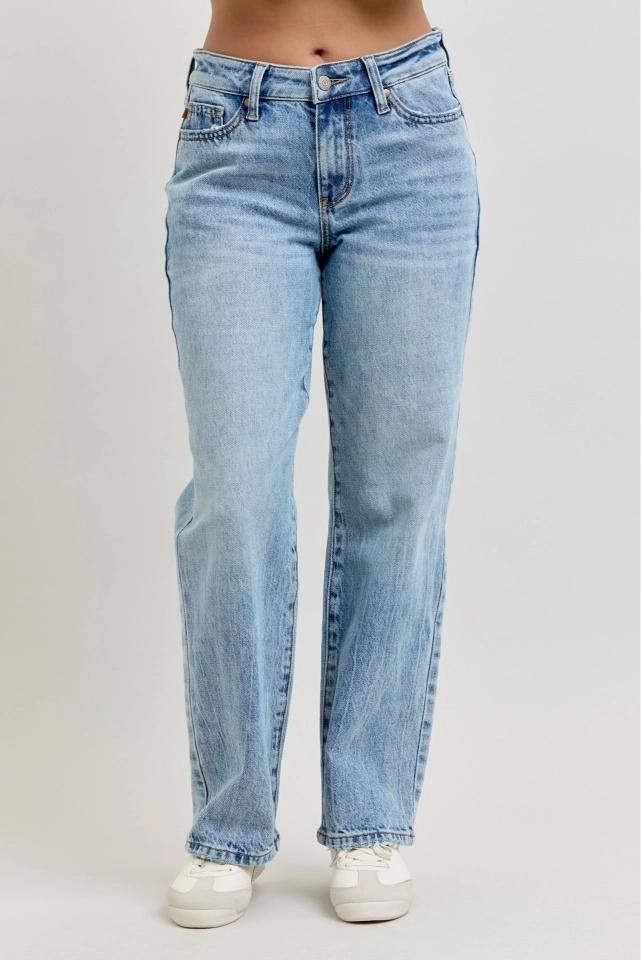 Meet the MR Petite Rigid Magic Straight jeans by Judy Blue, a must-have addition to your denim collection. These jeans, perfect for fall/winter, offer a contemporary casual style for everyday wear. Crafted with a medium wash and a solid pattern, these straight jeans are designed for the modern woman. The front panel is 100% cotton while the back panel blends 94% cotton, 5% poly, and 1% spandex, providing a comfortable fit. With a front rise of 9 1/2" and an inseam of 28", these jeans are made to fit flawlessly. Wash by hand to maintain their quality. Embrace the laid-back style with Judy Blue Jeans.