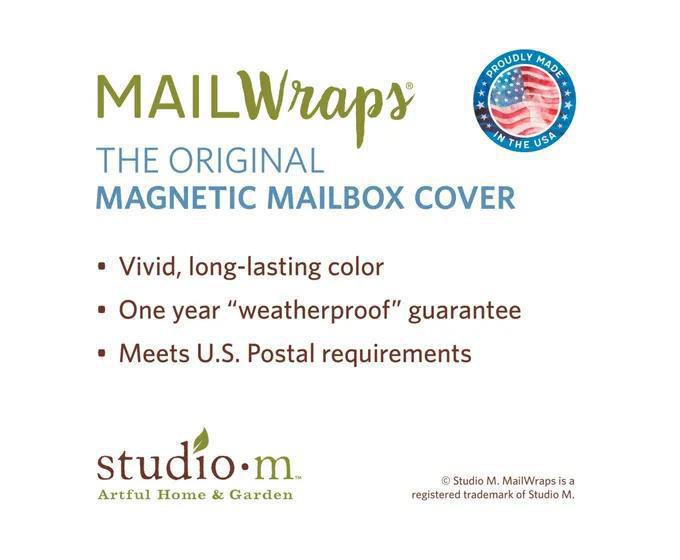 This MailWraps® magnetic mailbox cover is pre-cut to fit a standard (T1) rural mailbox 6 1/2" wide x 19" deep. UV-printed for vivid color reproduction and exceptional durability. Made in USA. Mailbox not included.