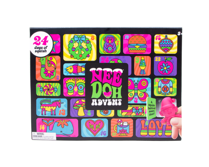 Celebrate the holidays with a daily dose of fun from the NeeDoh Advent Calendar! Open each door to uncover a bright and colorful mini NeeDoh toy, with squishies, new shapes, and groovy textures waiting every day. The 24 surprises inside, are a super fun way to keep the holiday spirit groovy!