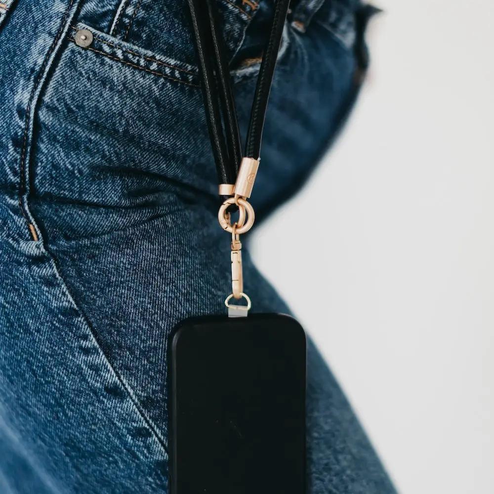 The best all year-round accessories! Our Phone Holder Crossbody Strap is here for all your activities. Featuring a colorful tweed or metallic material with gold hardware, this strap will elevate all looks while leaving you handsfree! Measurements: 46"