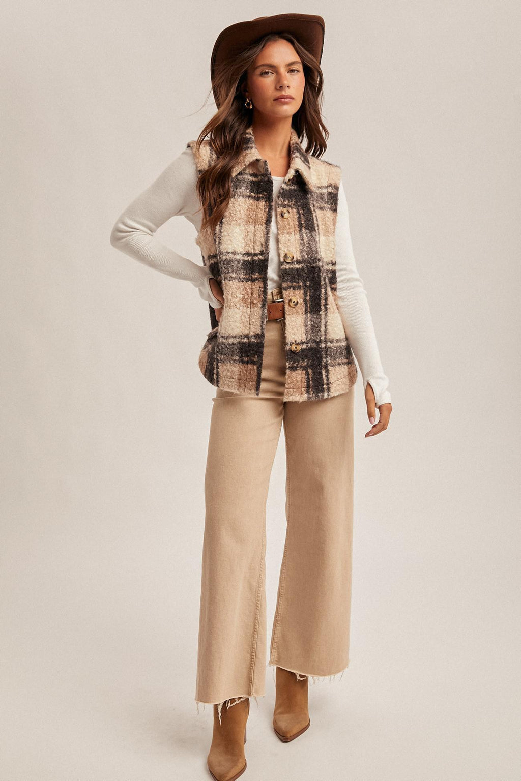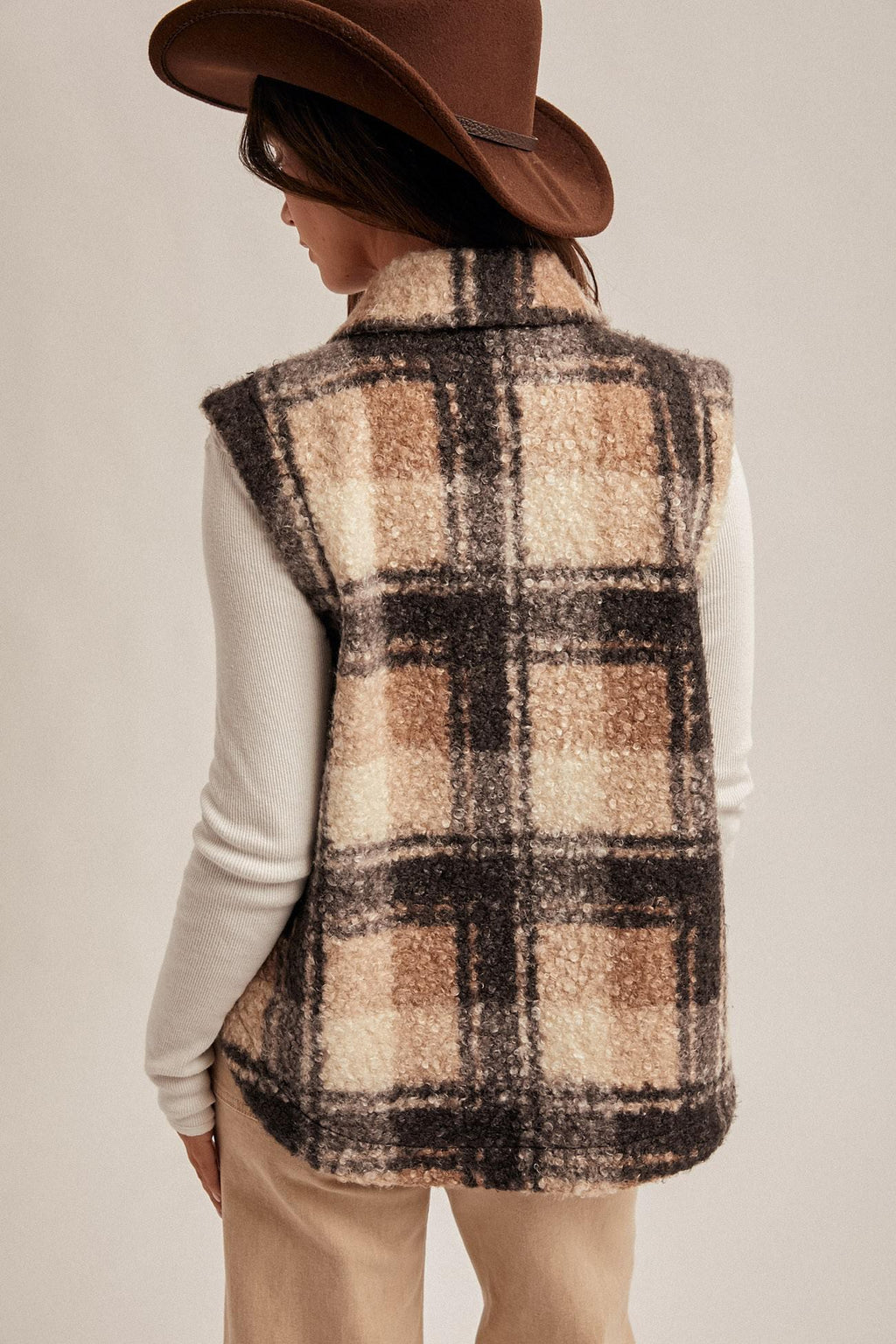 Plaid Boucle Button Down Vest