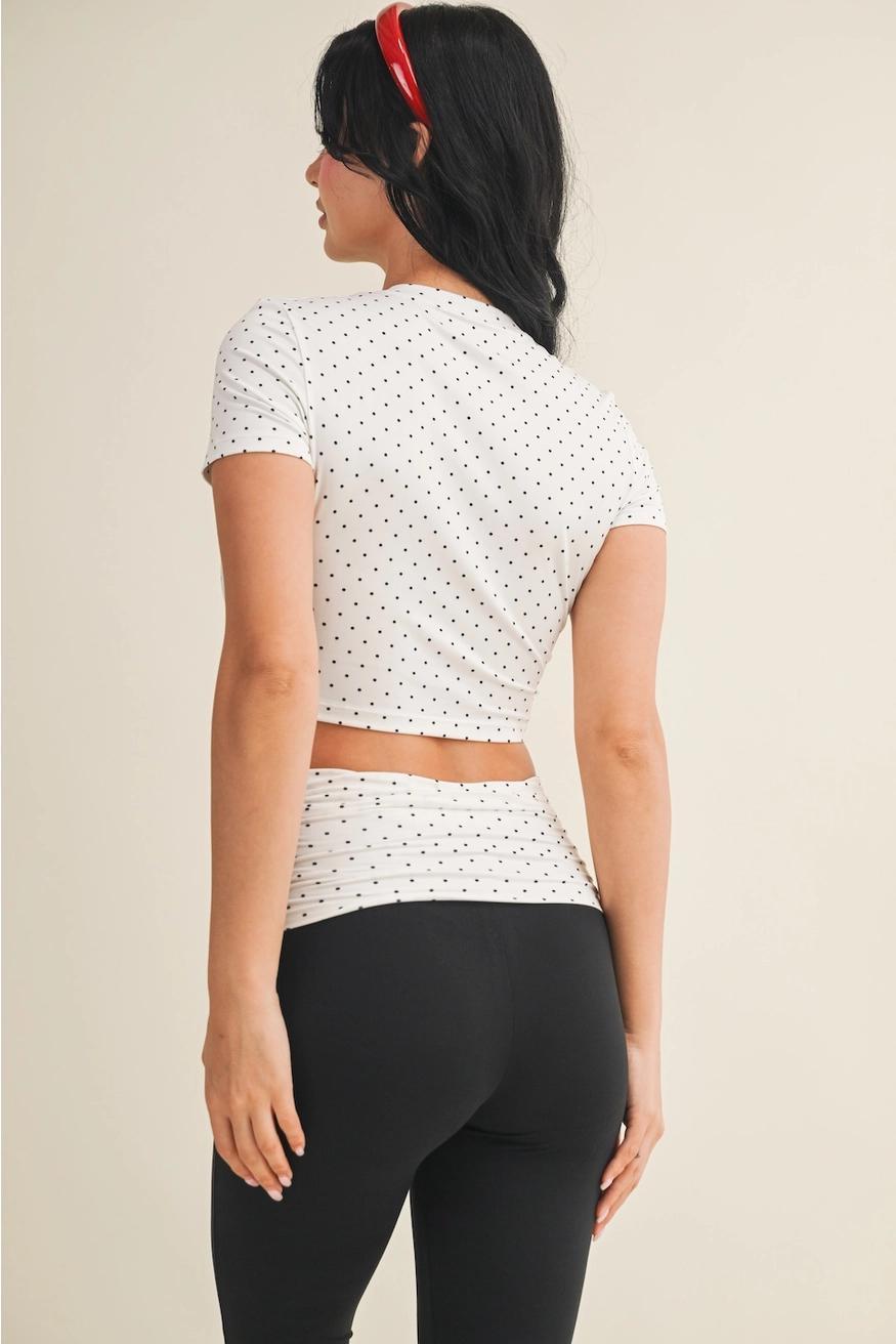 A flattering polka dot print crewneck with soft, breathable fabric and a tight, figure-hugging fit.