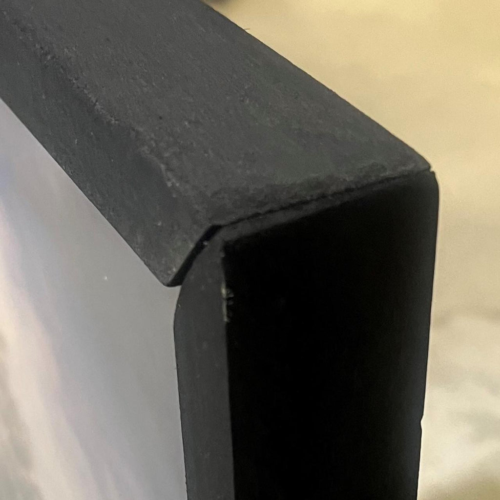 This Box Frame is called "Santa's Arrival" and is available in a variety of sizes. This print depicts Christmas Eve, with Santa Claus just arriving walking along a snow-covered path through the woods. In the center stands a large evergreen tree adorned with soft white lights. It is UV protected so you will never have to worry about fading! The Poplar wood frame is espresso stain and will add about one inch per side with an amazing 1.5 inch thickness. The Box Frame also gives you options, you can hang it from the wire hanger that is attached to the back, or you can sit it on a flat surface!