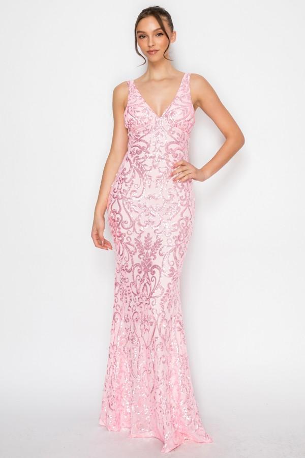 Step into the spotlight in a radiant sequin mermaid maxi dress made to turn heads. The V-neckline offers a clean, feminine shape that feels timeless and refined. A softly padded bustier provides comfortable support while enhancing the fit. The high-waisted skirt seam creates a long, sculpted silhouette. The mermaid shape hugs the body beautifully before flowing out with drama. An open diamond back adds a striking, fashion-forward touch. A satin bow lace-up detail brings a romantic finish with adjustable appeal. A discreet back zipper ensures easy wear. Fully lined for a smooth, elevated feel against the skin. Stretchy fabric allows you to move with confidence and ease.