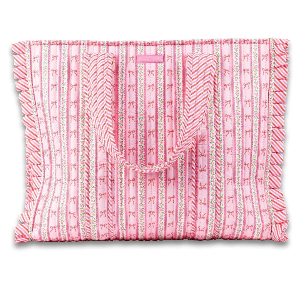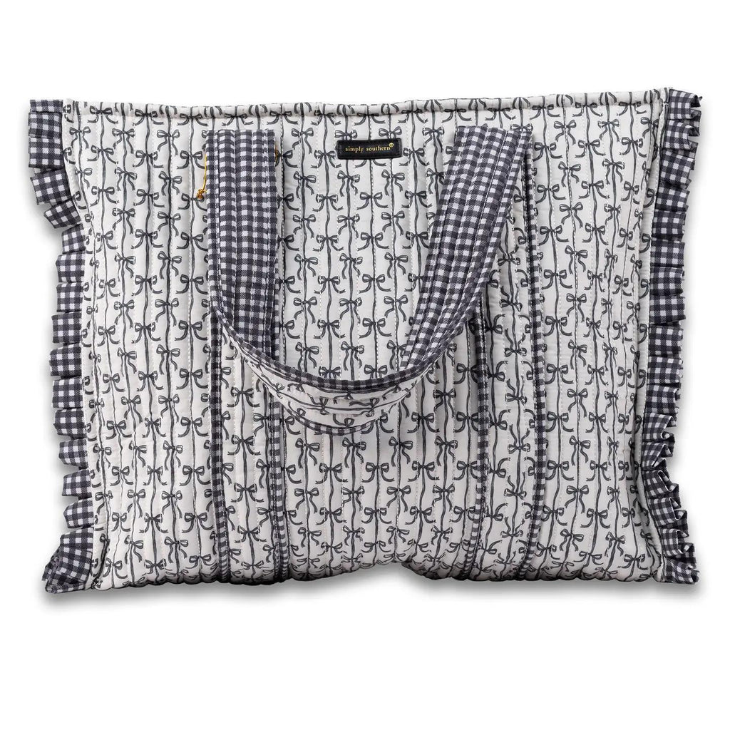 The Quilted Tote is perfect for the everyday. Featuring a structured construction, two top handles for easy carrying, exterior zipper pocket for easy access and zippered main compartment with Simply Southern gold tone logo label. Made of 100% cotton shell, 100% cotton lining and 100% polyester filling.