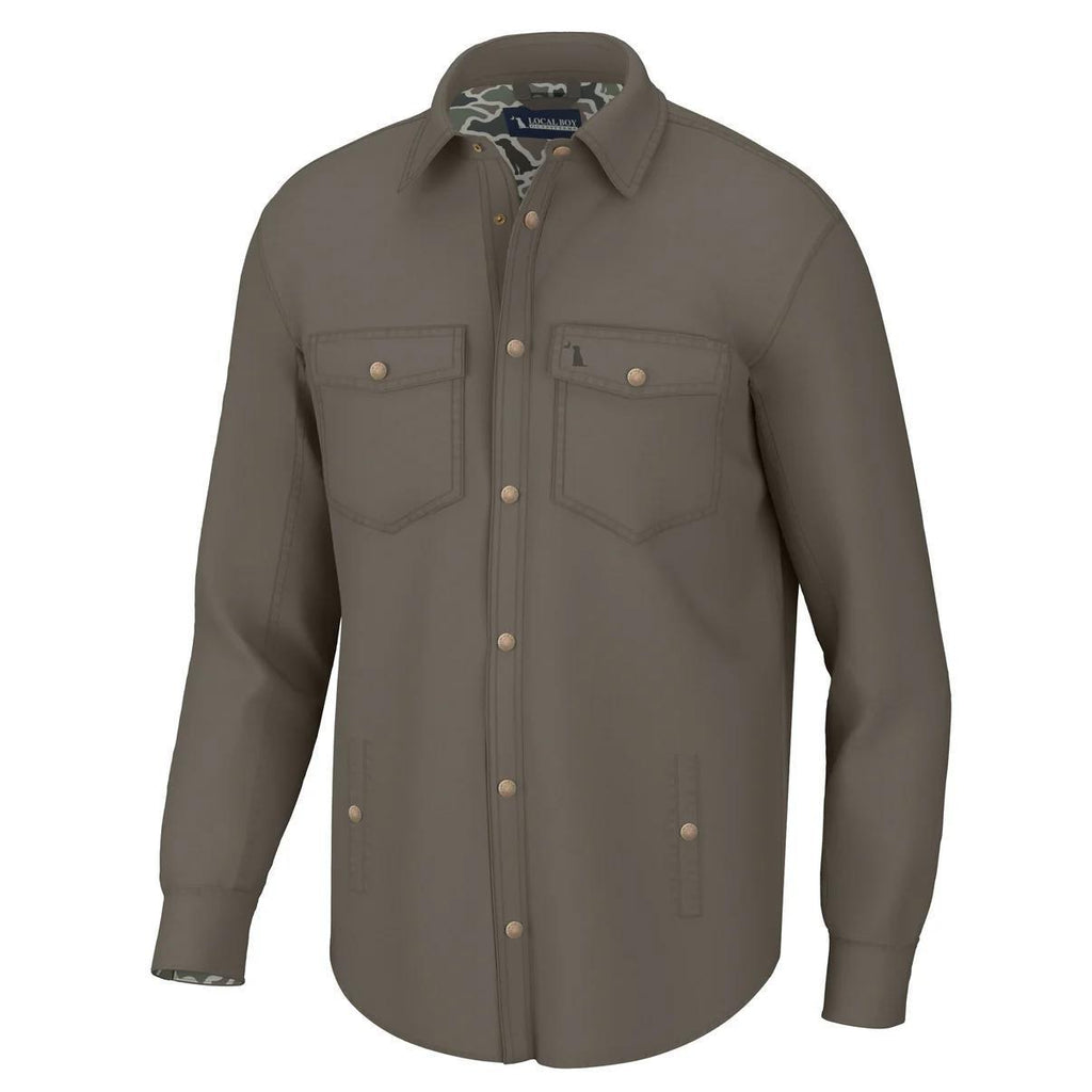 Is it a shirt or a jacket? While there's room for debate, one thing is for certain: this thing is as sharp as a tack. Cut in a traditional fit with a curved bottom hem for added mobility, this mid-weight superstar is our take on the traditional chore jacket. Featuring logo snaps at the placket and snap-flap upper exterior pockets, we accented these slick tricks with contrasting designs on the interior. Double-stitched throughout for durability and finished off with stacked buttons at the cuff and a leather LBO logo patch at the back, this versatile do-all is sure to add some smooth to your groove.