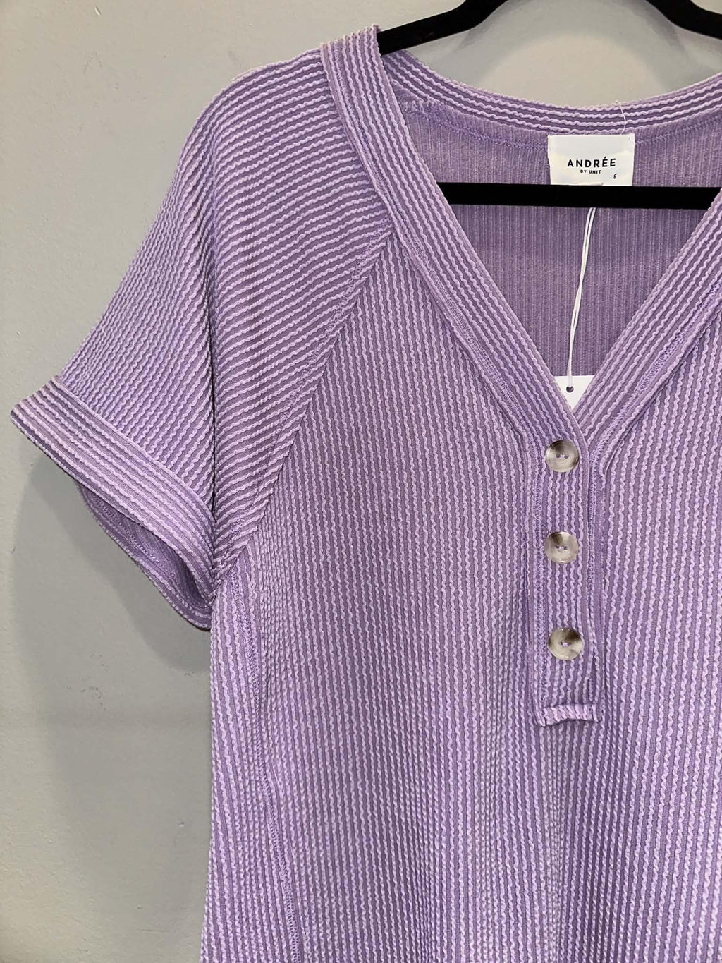 A ribbed top with a lightweight sweater vibe, this top features a flattering v neckline with relaxed poncho sleeves and buttons. The breathable, textured fabric adds a casual, airy feel, making it perfect for layering or on its own. Knit, stretchy.