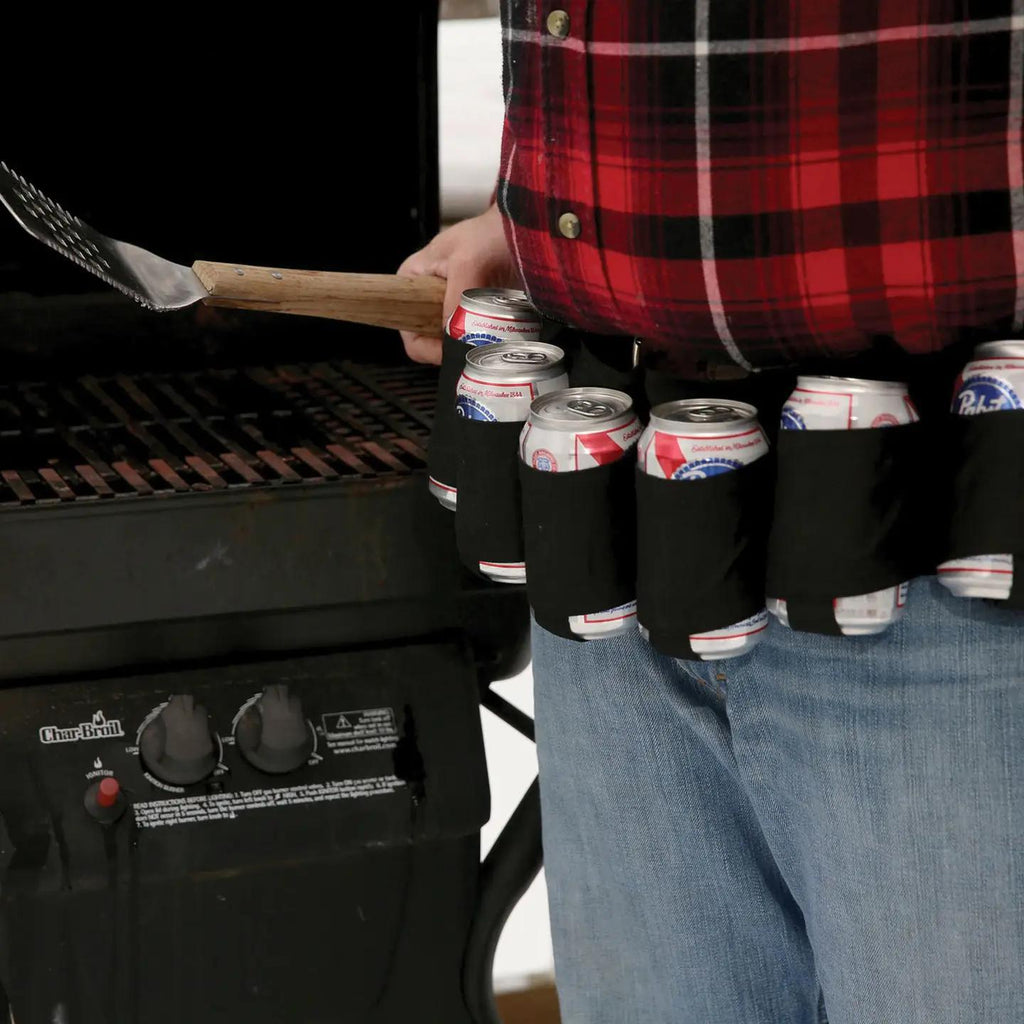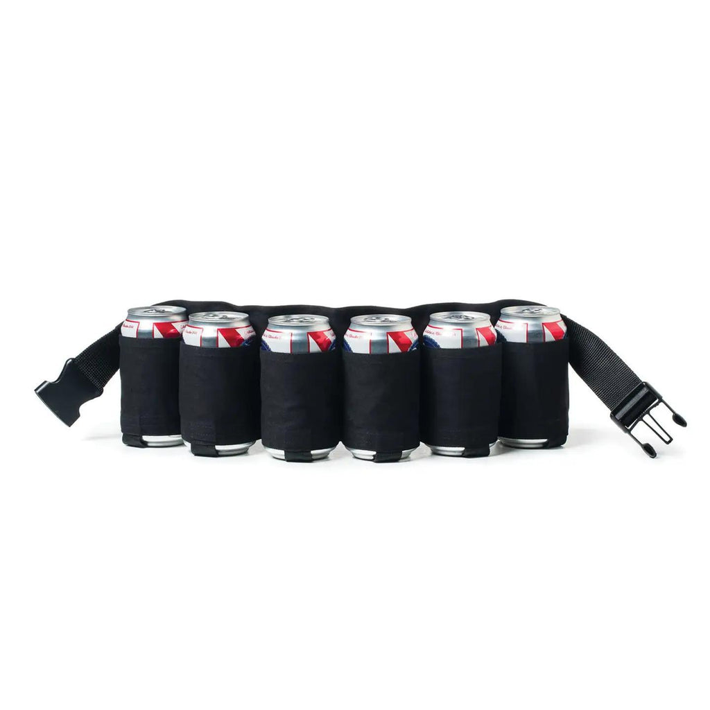 Keep a six on your belt at all times A best-seller, the wearer of the beer belt is guaranteed to be the life of the party. This belt holds a six-pack of brew, keeping one of life’s essentials at reach at all times. Available in black or camo. * holds a six-pack of your favorite beverage * available in black or camouflage * a great gift for tailgating and party animals * one size fits all (30-54″ waist)