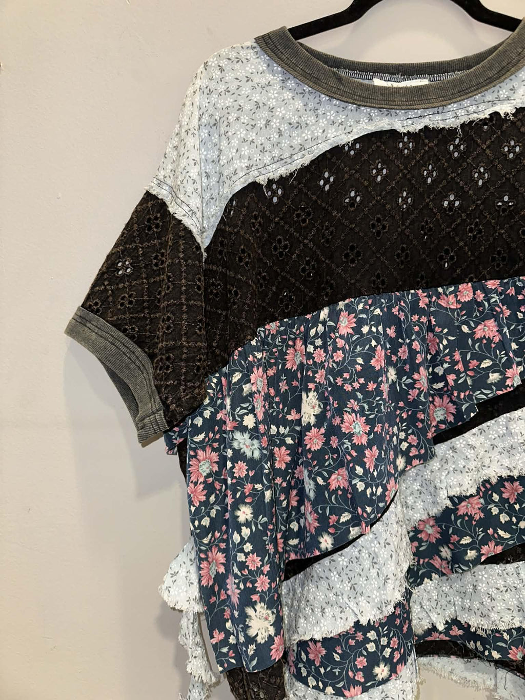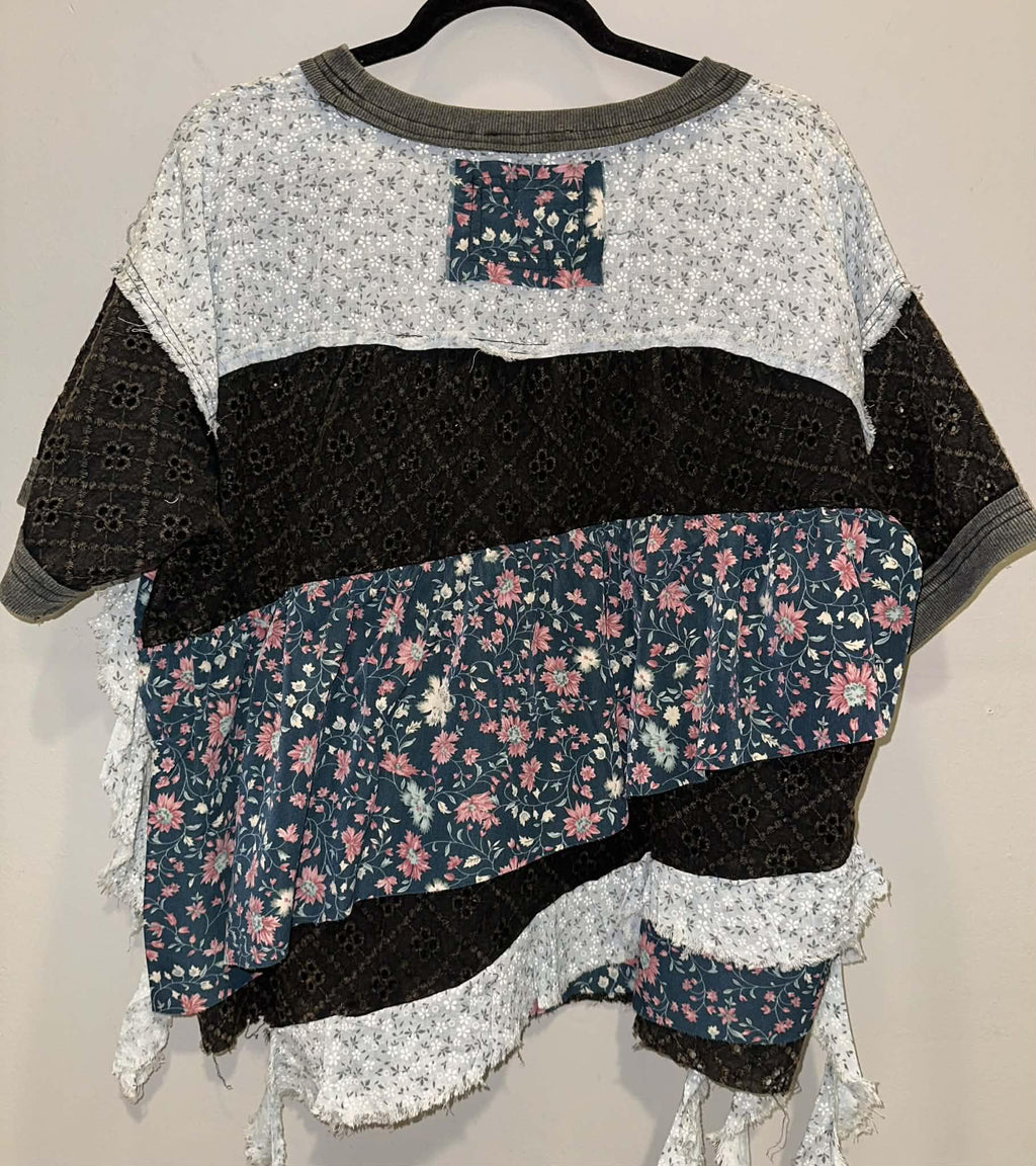 Washed Fabric Mix Floral Tiered Blouse