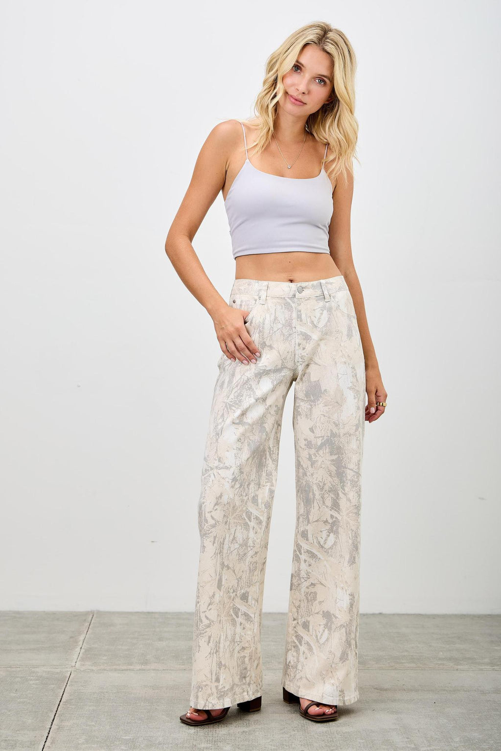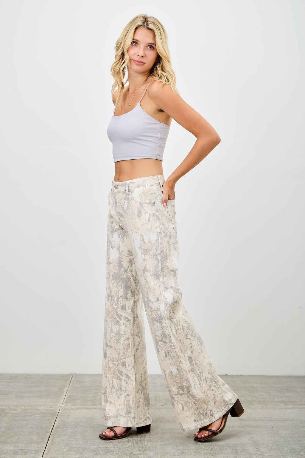 DETAIL - STRETCH - MID-RISE WITH ZIPPER FLY - 5-POCKET STYLING - PRINTED SIZE + FIT - FRONT RISE: 9 1/2 - INSEAM:31 - LEG OPENING: 22 1/2 - MODEL IS WEARING SIZE 3 - MODEL IS 5 8 CONTENT - 98% cotton and 2% spandex